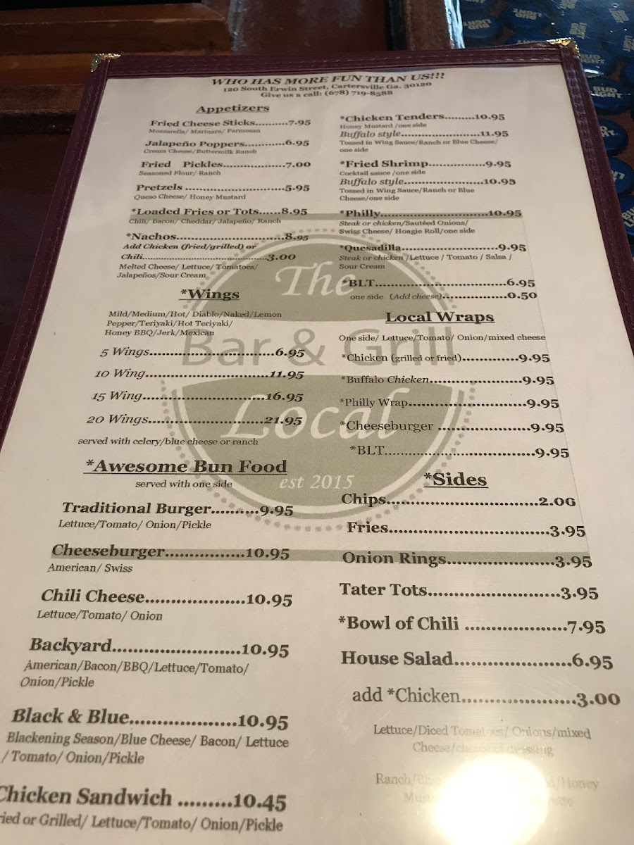 Welcome to The Local Bar & Grill, a hidden gem nestled in Cartersville, GA. Known for its vibrant atmosphere and welcoming staff, this establishment offers a culinary experience that celebrates comfort food with a modern twist.